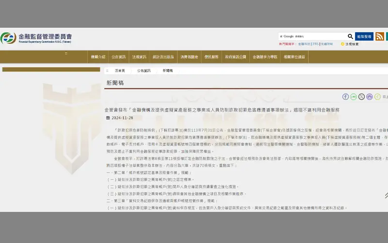 其實跟政府金管會有關係,因為最近詐騙猖獗,所以金管會發布了「金融機構及提供虛擬資產服務之事業或人員防制詐欺犯罪危害應遵循事項辦法」遏阻不當利用金融服務。