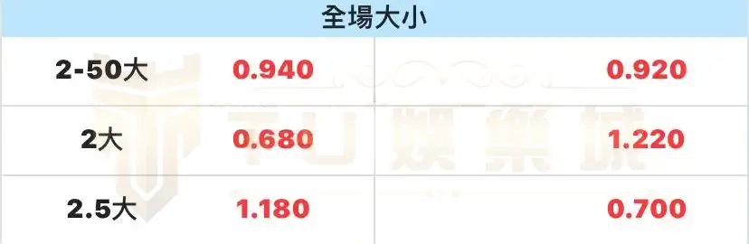 但如果今天比賽最終總得分是2分,則投注大分的會輸掉一半的本金,2分以下(不包含2分)則是全輸。